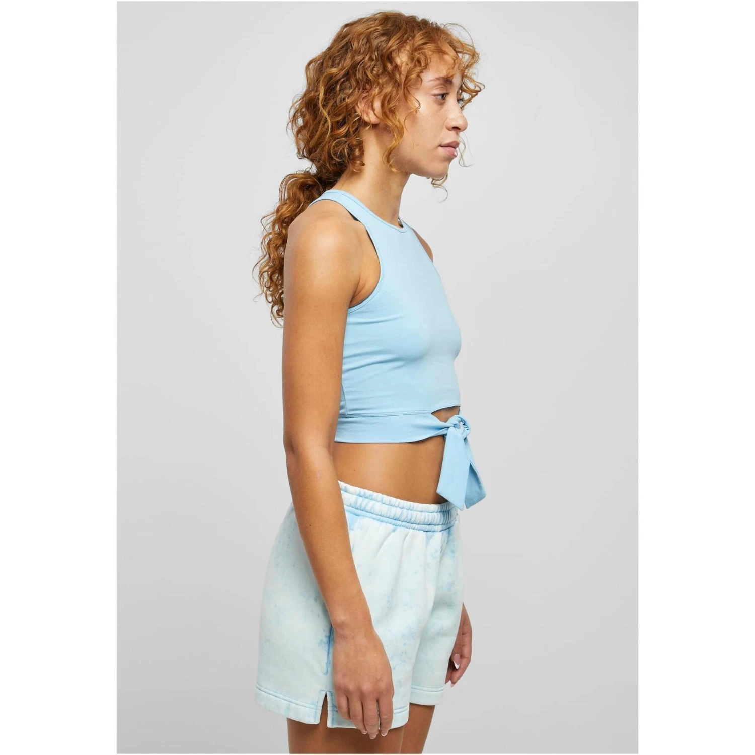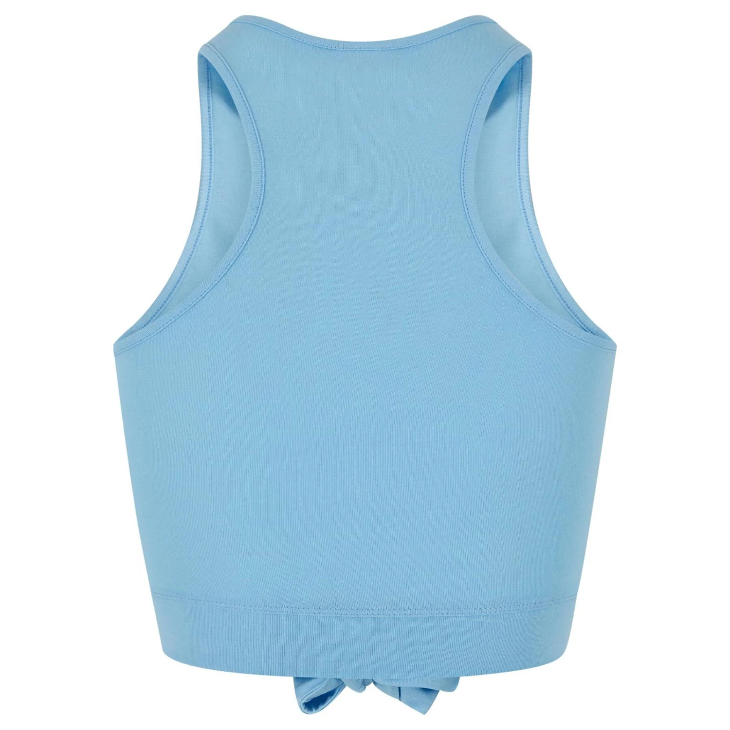 Die look dieses sportlichen und court Oberteils für Frauen lässt einen authentischen Stil erkennen. Es hat einen dynamischen Schwimmerrücken, der viel Freiheit im Rücken und auf der Vorderseite bietet, sowie einen Rundhalsausschnitt. Verspielte Details sind zwei Bänder, die sich über dem Bauchnabel zu einer Schleife zusammenfügen. Dieses einfarbige Oberteil für Damen besteht aus glatter, leicht dehnbarer Baumwolle. Der Schnitt ist tailliert und eng anliegend.