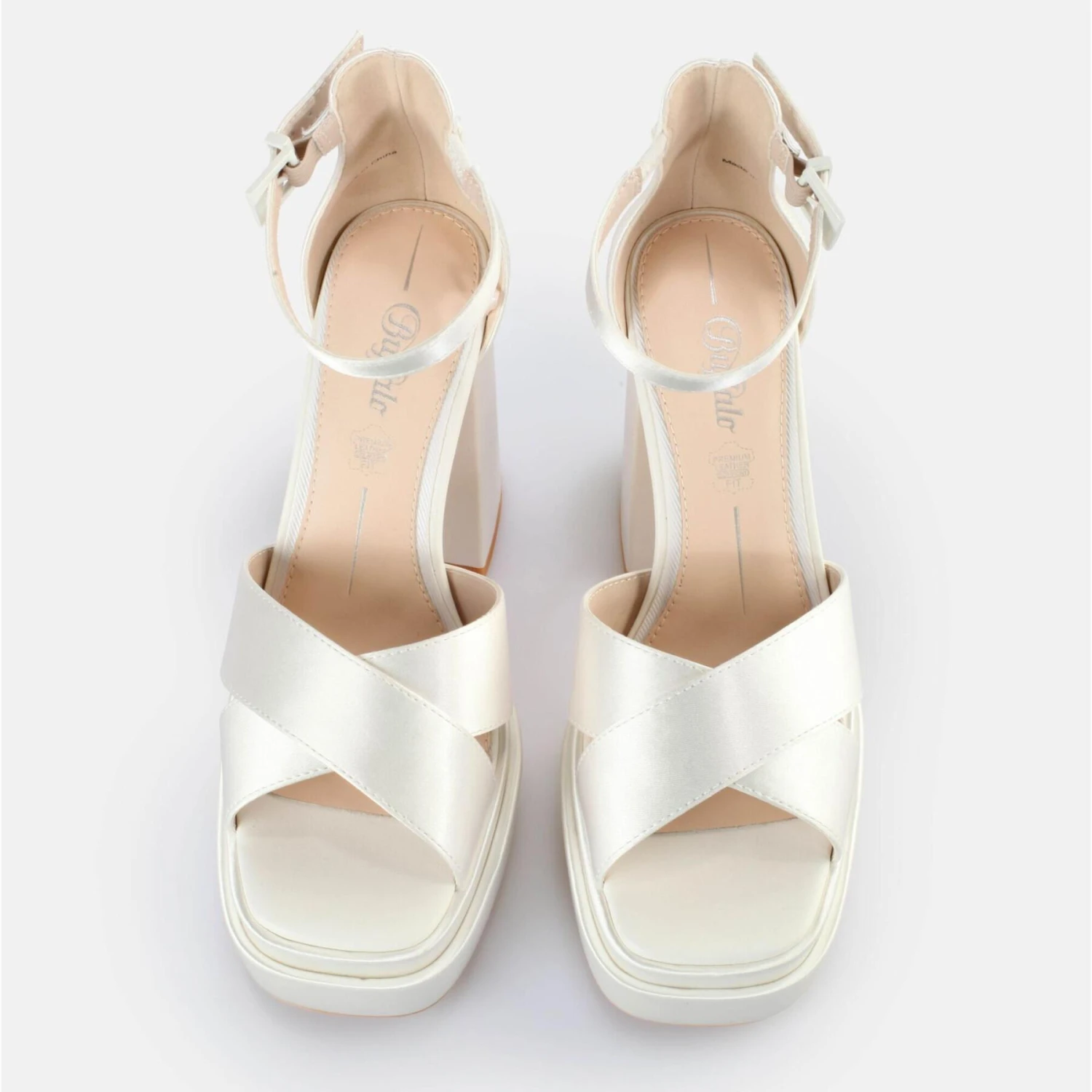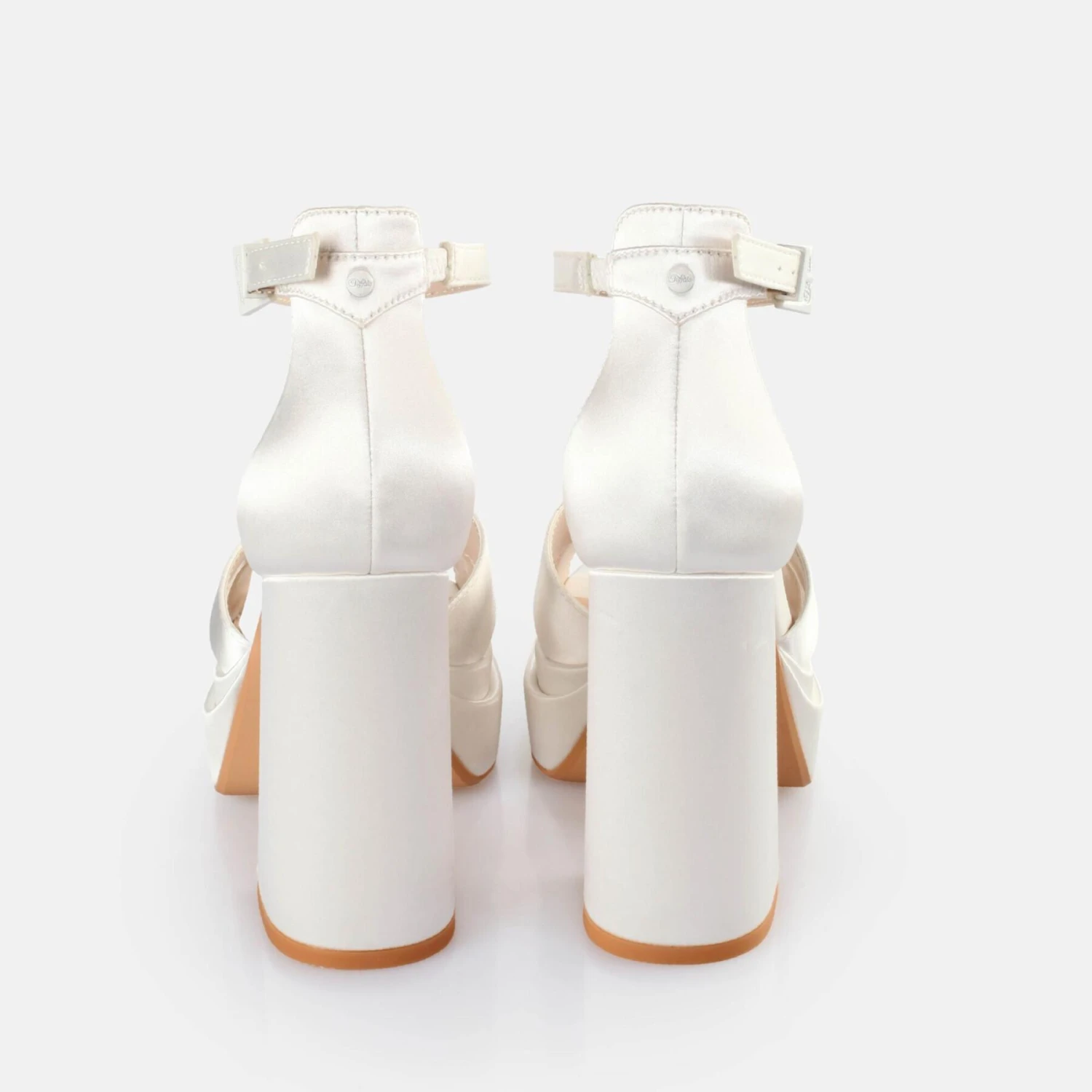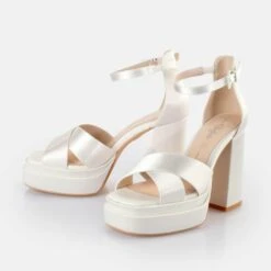 Ein dezenter Glanz: Die Sandalen mit Absatz Bonny Cross verführen mit einer trendigen Crossover-Optik aus leuchtendem Satin. Der hohe Stilettoabsatz dieses leichten Modells hebt die Silhouette hervor. Der zarte Knöchelriemen sowie die Innensohle aus hochwertigem Leder und Memory Foam sorgen für einen hohen Tragekomfort. Mit diesen Schuhen an den Füßen ziehen Sie während der Zeremonie alle Blicke auf sich.