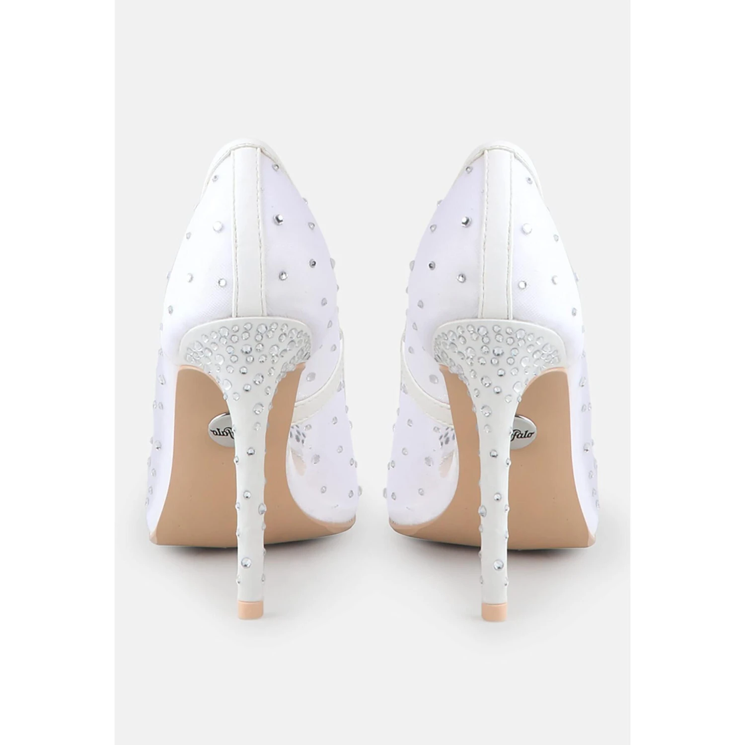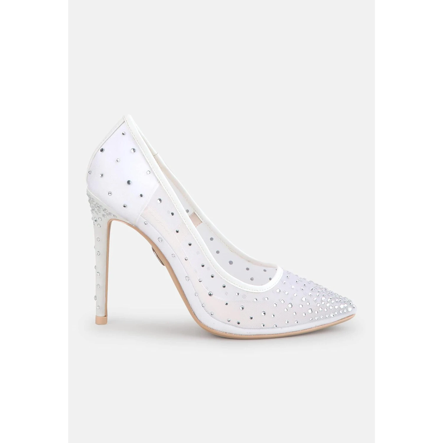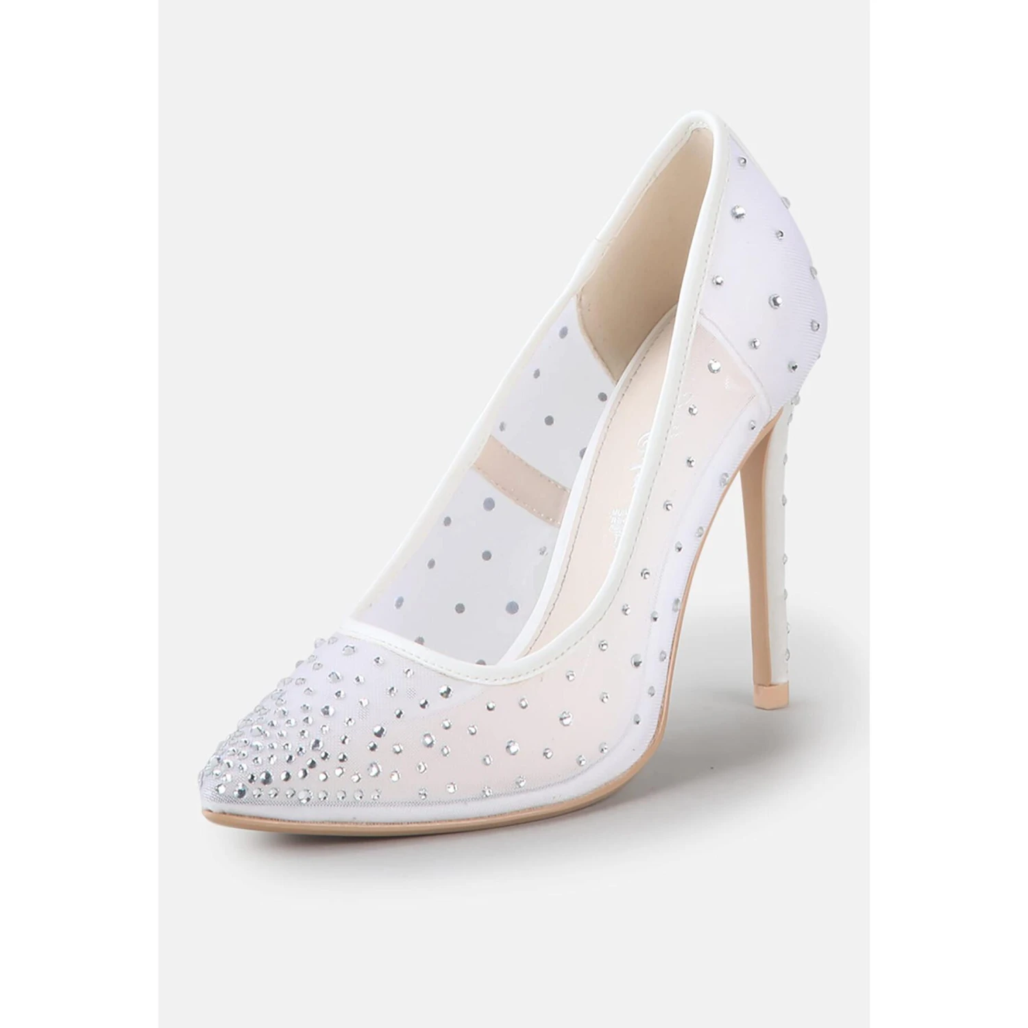 Cinderellas Traum wird wahr: Die Pumps Kleo aus transparentem Mesh sind mit unzähligen funkelnden Strasssteinen verziert und verführen auf den ersten Blick. Ihr ultrahoher Absatz bleibt bequem und ist das Highlight dieses Modells. So wird Ihr Traumprinz Ihnen während der gesamten Zeremonie und auch danach noch verliebte Blicke zuwerfen.Eigenschaften:Elfenbeinfarbenes MeshGlitzernde StrasssteineSpitz zulaufendes Design11 cm Stiletto-Absatz