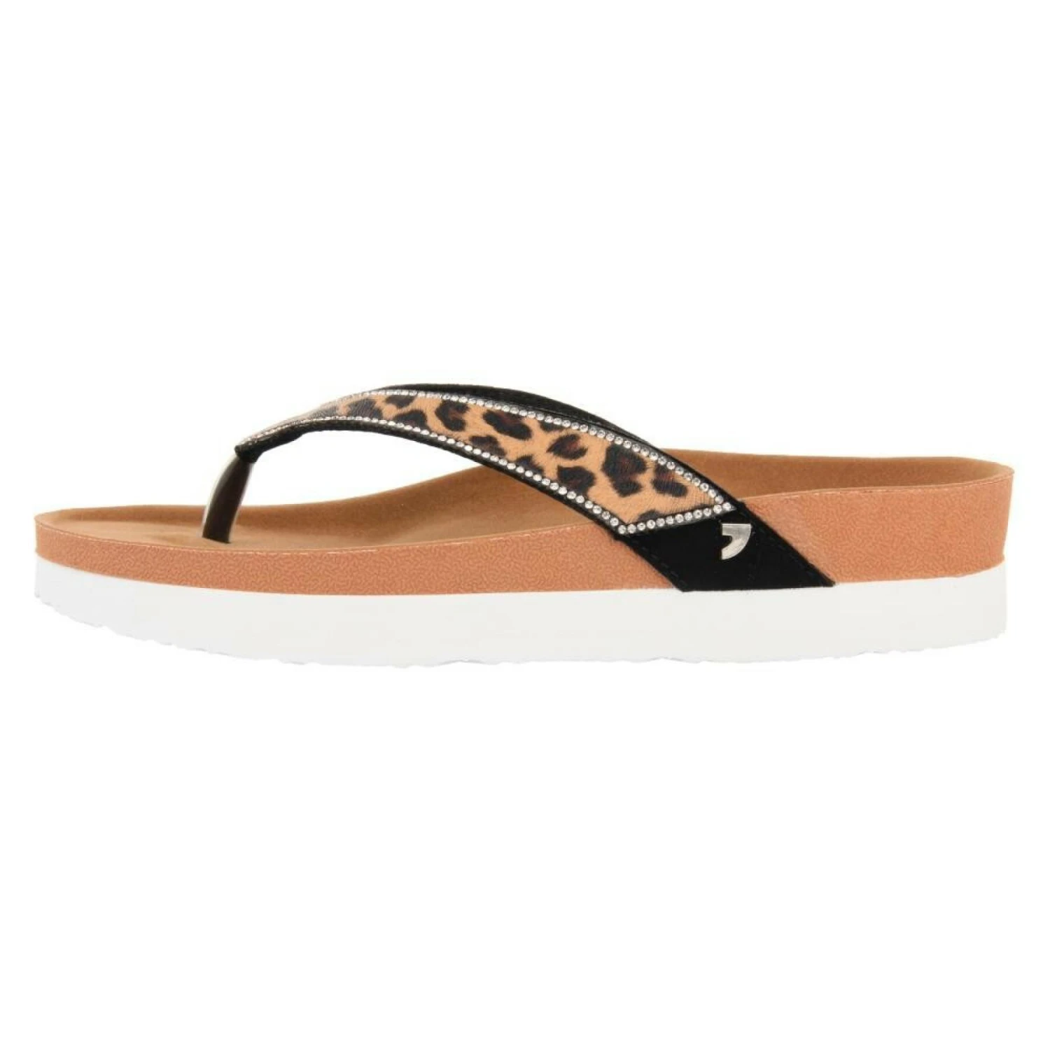 Die bequemste Wahl! Flip-Flops aus synthetischem Material im Leopardenlook mit Piercing-Details rundherum. Ergonomisch geformte, wasserfeste Bio-Doppelsohle.