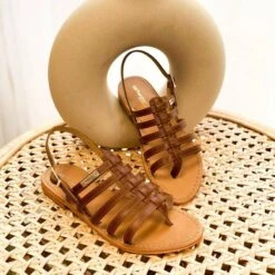 - Damensandalen HERISSON aus Leder, mit verstellbarer Schnalle.