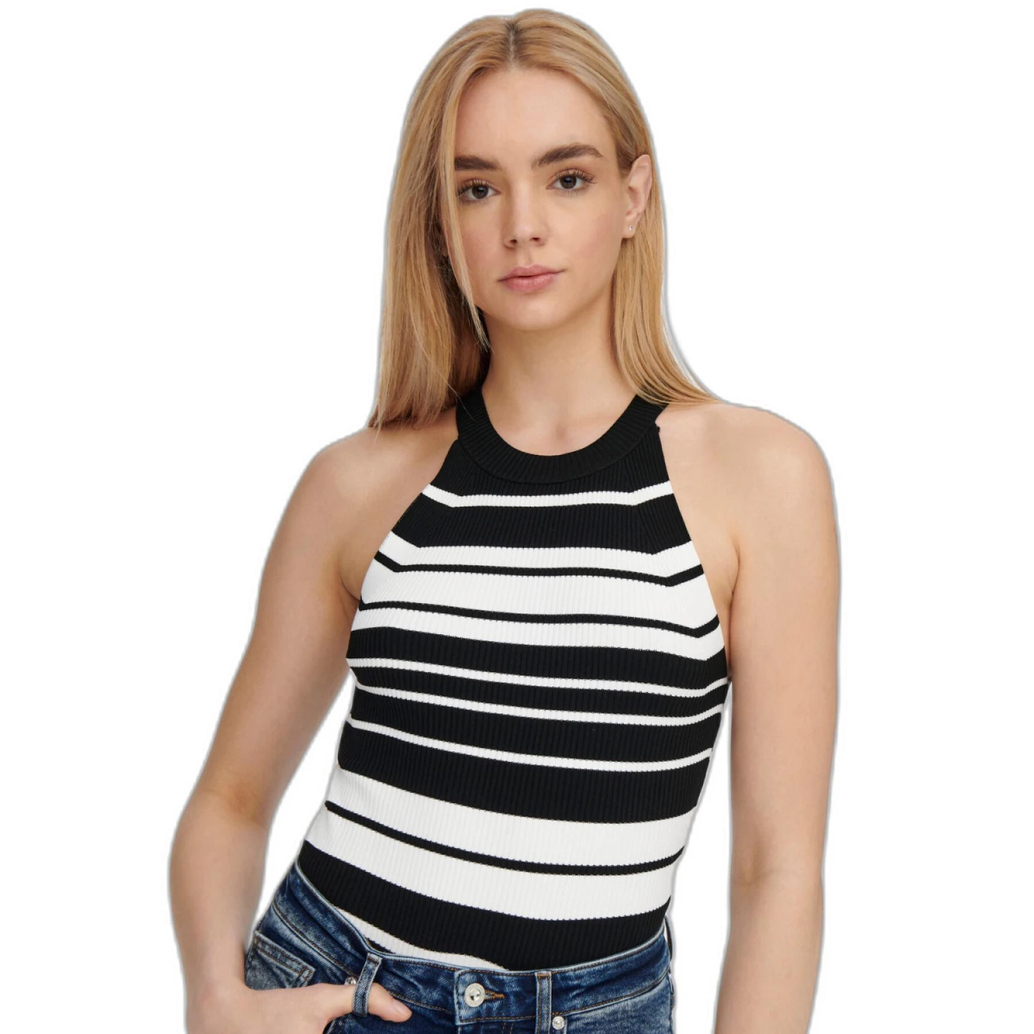 – Detail Typ: Strick-Top – Länge/Größe: Regulär – Anlass/Stil: Leger und leicht den ganzen Tag zu tragen – Kragen: Neckholder – MANSCHETTE: Ärmellos (S/L)
