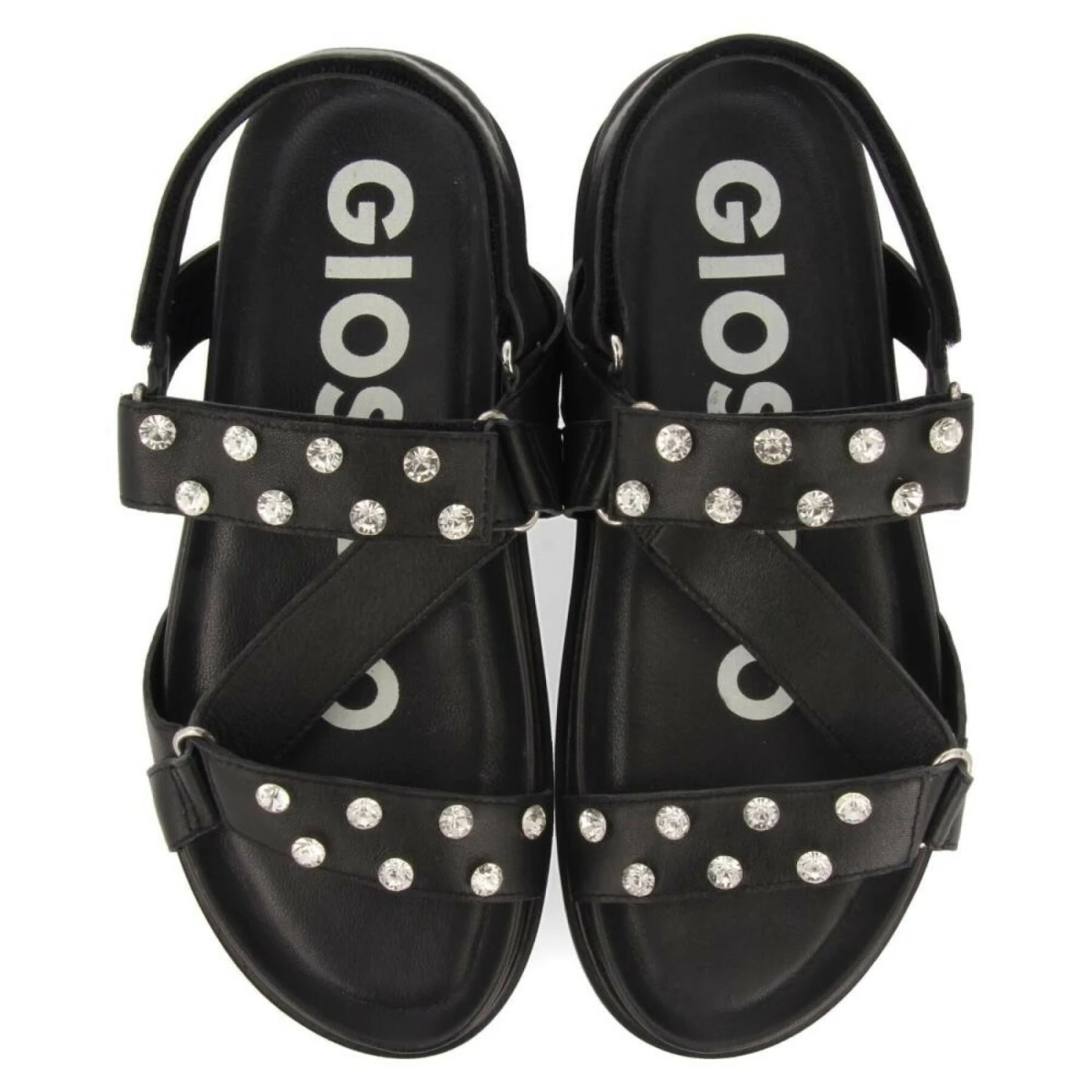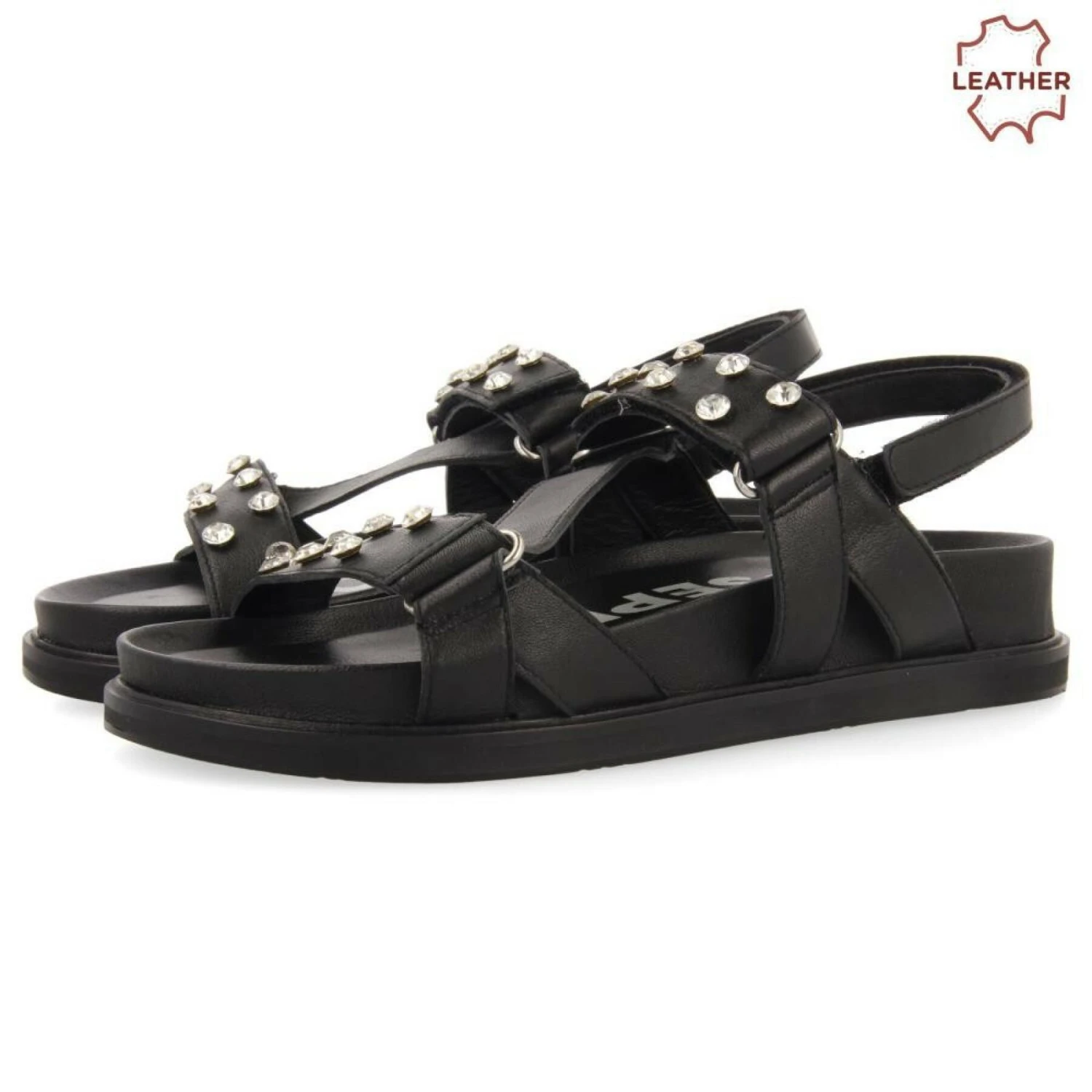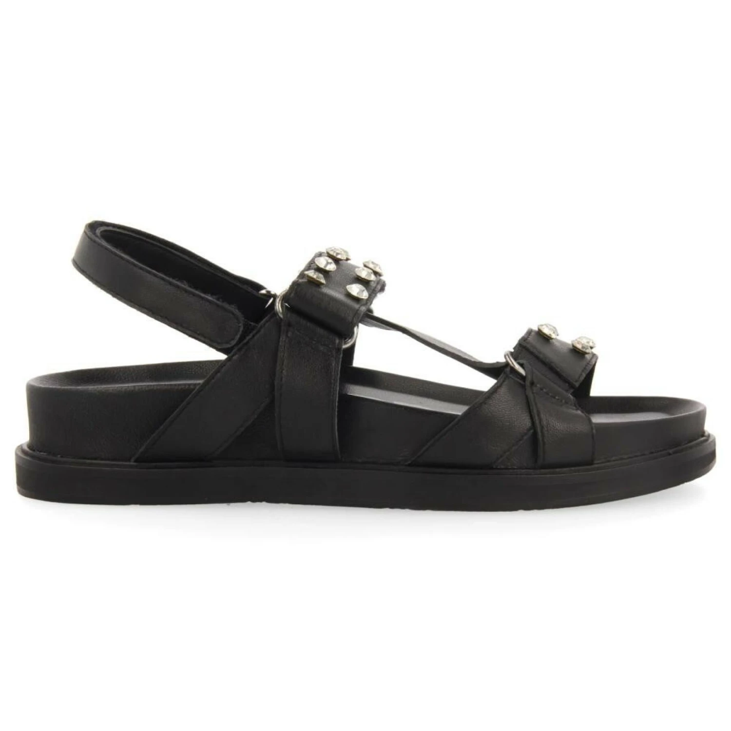 - Bio-Sandalen aus Leder mit Strasssteinen.