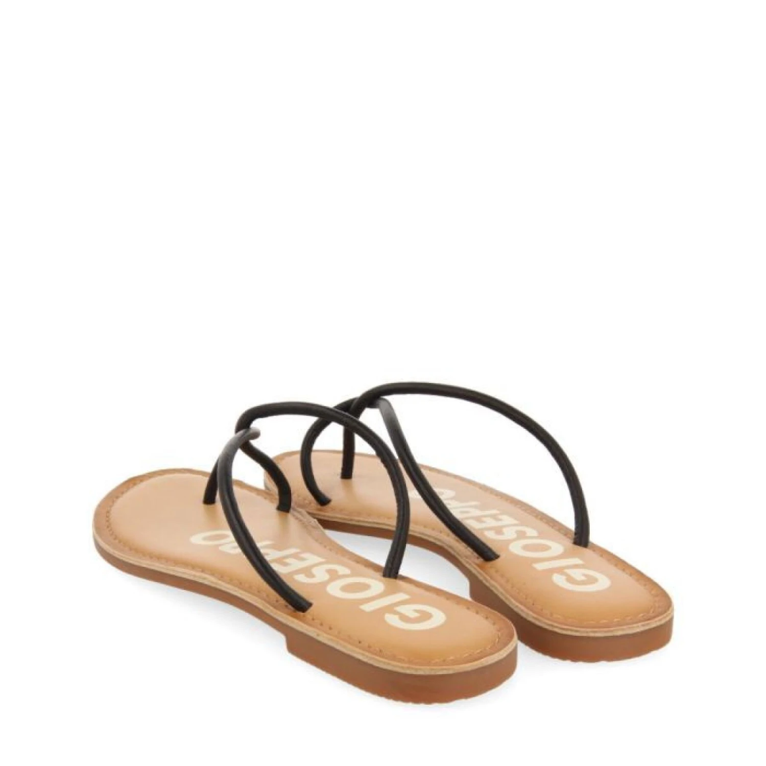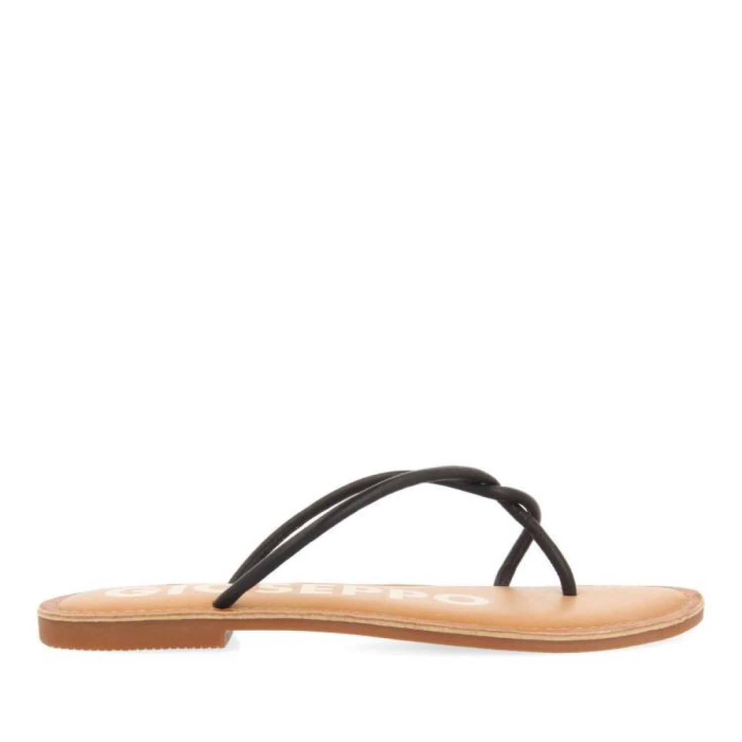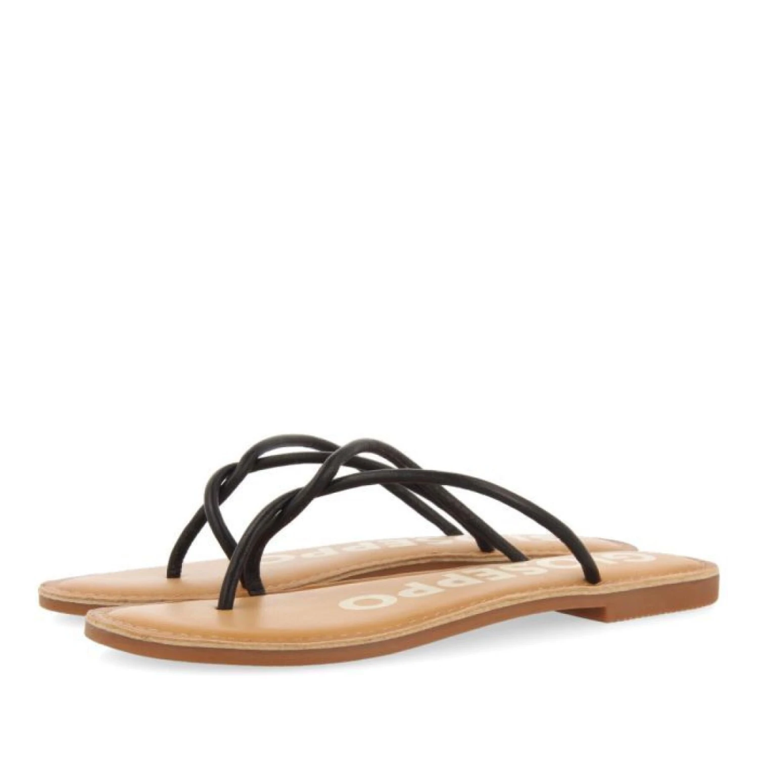 Sandalen aus schwarzem Leder mit schmalen Riemchen. Gepolsterte Einlegesohle aus Latex. Innensohle aus Leder, das in einem nachhaltigeren Verfahren nach den Standards der Leather Working Group gegerbt wurde.¡ Genießen Sie den Minimaltrend!