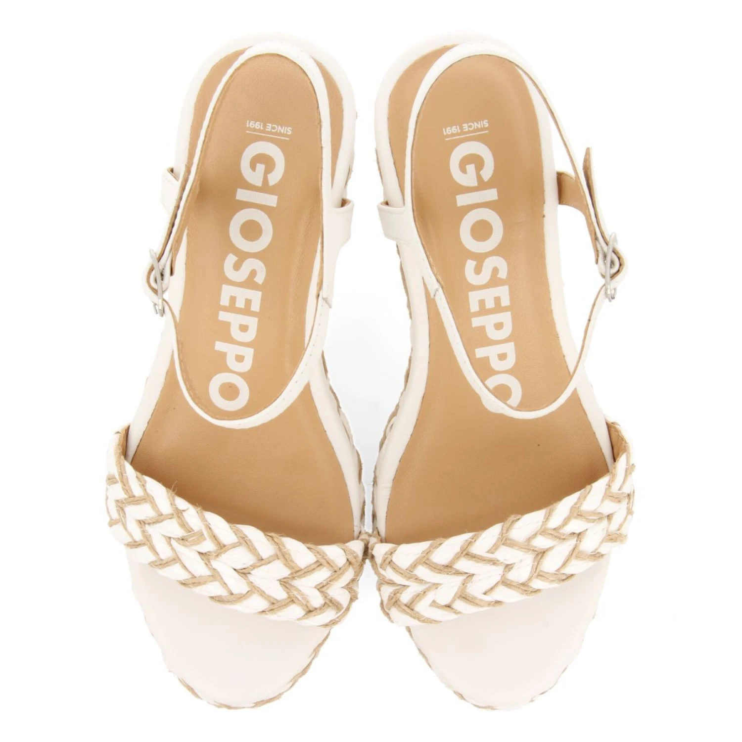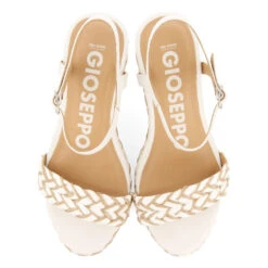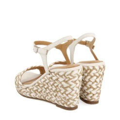 Eine 10 für dieses Modell! Zweifarbige Sandalen in Weiß und Naturton mit Seilgeflechten und einer hohen Plateausohle. Verstellbarer Verschluss am Knöchel für einen besseren Halt. Stark gepolsterte Latex-Einlegesohle für optimalen Tragekomfort. Innenfutter aus Leder, das in Gerbereien nach einem nachhaltigeren Gerbprotokoll gemäß den Standards der Leather Working Group gegerbt wurde. Die Keilsandaletten, nach denen Sie suchen, finden Sie in der neuen Kollektion Gioseppo Woman. Absatzhöhe 8,5 cm.