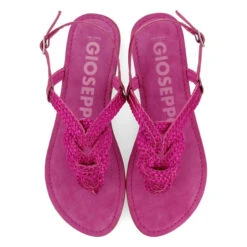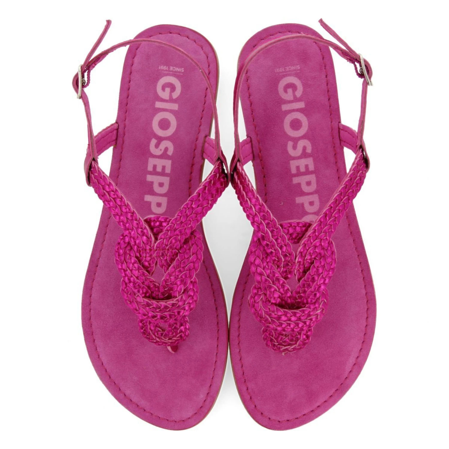 Diese Saison ganz in Farbe! Fuchsiafarbene Ledersandalen mit Flechtwerk und Knöchelverschluss mit verstellbarer Schnalle und passender Wildleder-Einlegesohle. Stark gepolsterte Latexsohle für optimalen Tragekomfort. Innenfutter aus Leder. Flexible Sohle. Entdecken Sie die Neuheiten in Sandalen Gioseppo Woman. Absatzhöhe 1,5 cm.