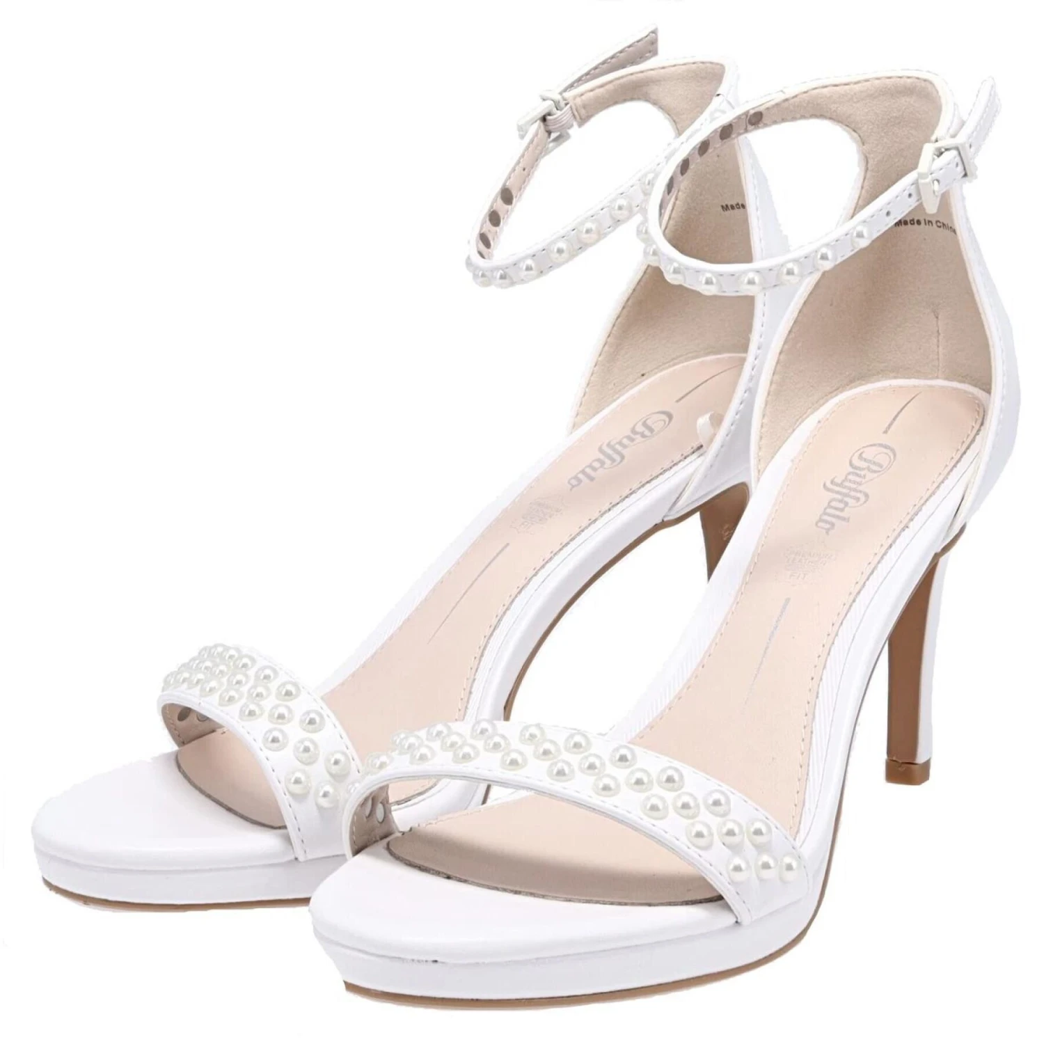 Der Charme der Sandalen Liana lässt niemanden unberührt. Dieses elegante Modell entführt Sie in ein Wunderland, denn die Perlenapplikationen kleiden Ihren Fuß auf feminine Weise. Der Stilettoabsatz und der geschlossene Fersenbereich bringen Ihr Hochzeitskleid zur Geltung.Eigenschaften:Kunstleder aus weißem NappalederPerlenapplikationengeschlossener Fersenbereich mit SchnallenriemenStilettoabsatz 9 cmInnensohle aus Leder
